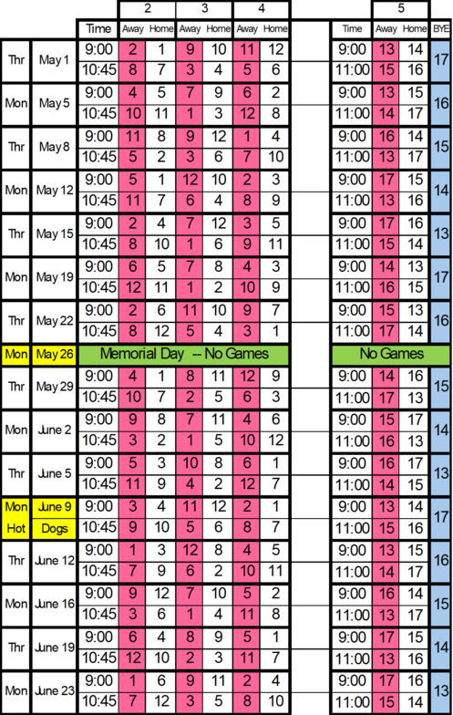 Chose the Practice Schedule or the Season Schedule from the tabs on the bottom of the sheet
